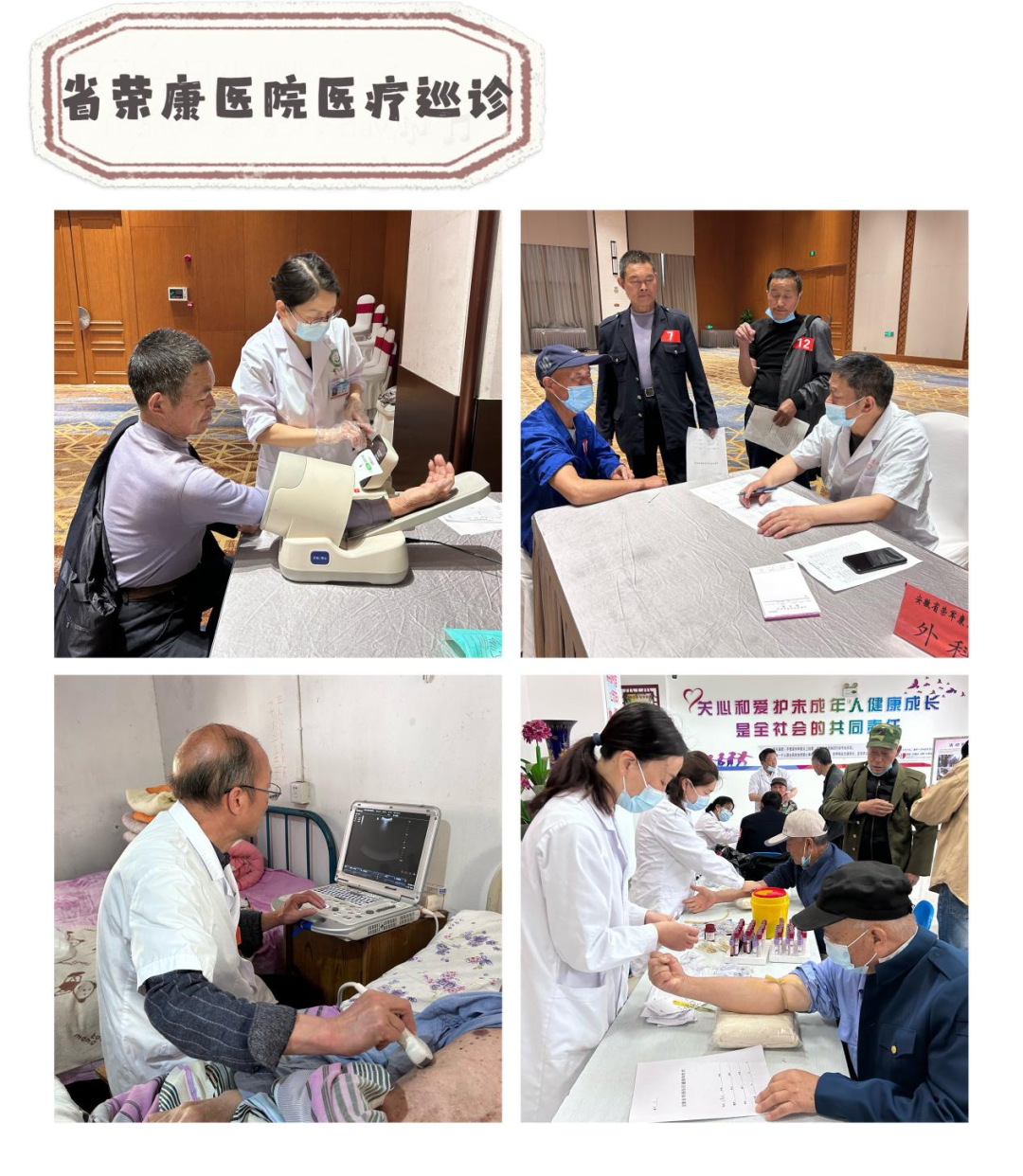为落实学习贯彻习近平新时代中国特色社会主义思想主题教育要求,办好民生实事,持续深化“我为群众办实事”实践活动,2023年4月18日—4月21日,省荣康医院组成一支医疗巡诊“轻骑队”,走进马鞍山对当地的优抚对象开展“送尊崇、送健康”医疗巡诊活动。