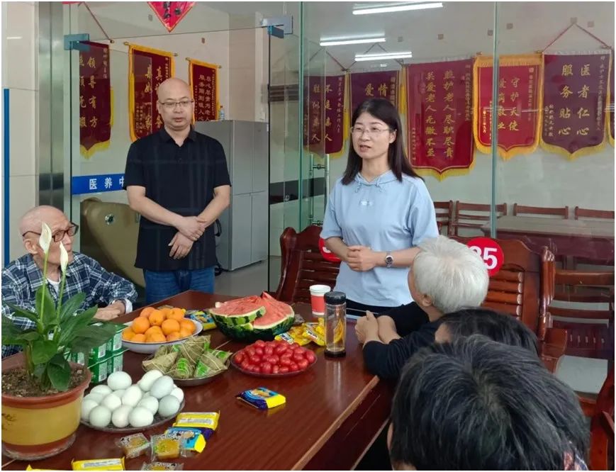 一年一端午,一岁一安康!为进一步弘扬中华民族传统美德,营造敬老、爱老、助老的良好社会氛围,6月22日端午节,荣康医院殷院长及医养中心全体工作人员为长者们开展了一场丰富多彩、别开生面的端午茶话会,陪伴老人又度过了一个欢乐的传统节日。