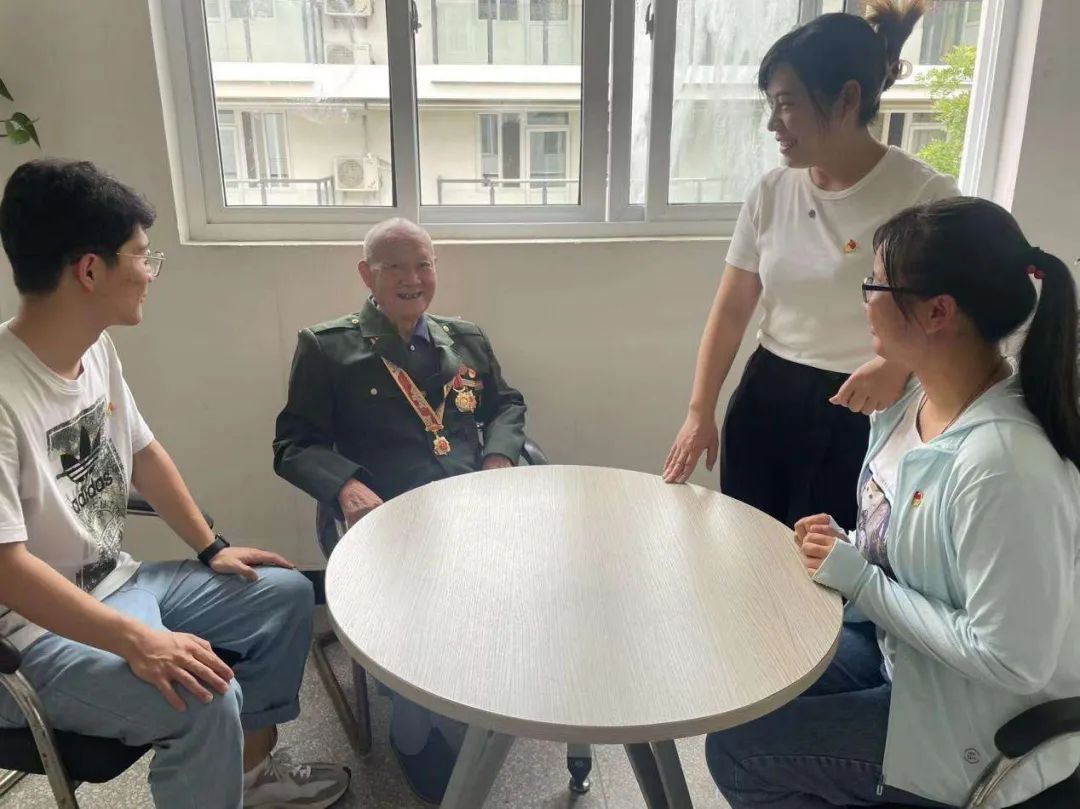 开东祥老人的房间里,开老向年轻党员们深情回顾了自己参军报国的过程,讲述了自己跟随部队参与解放海南岛、抗美援朝的经历,鼓励大家坚定不移听党话、跟党走,做新时代好青年。