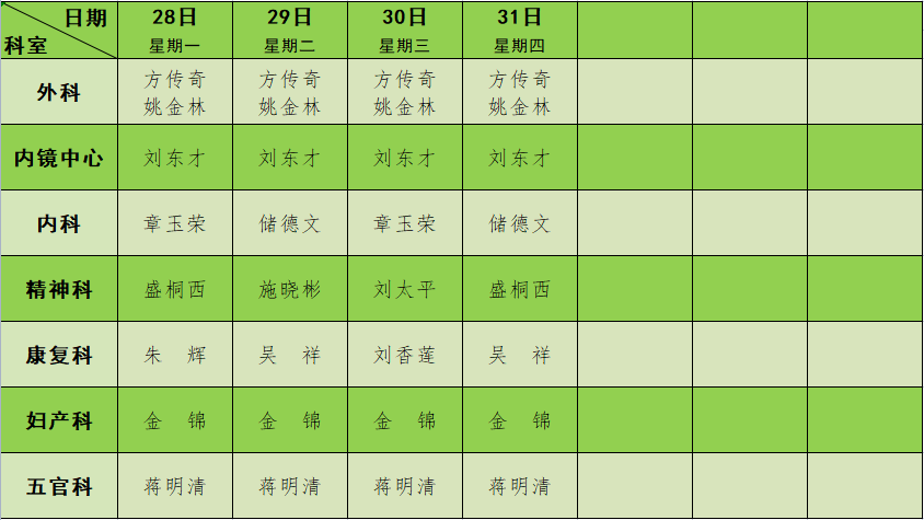2023年4月门诊节假日排班表