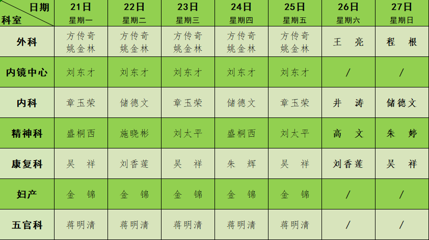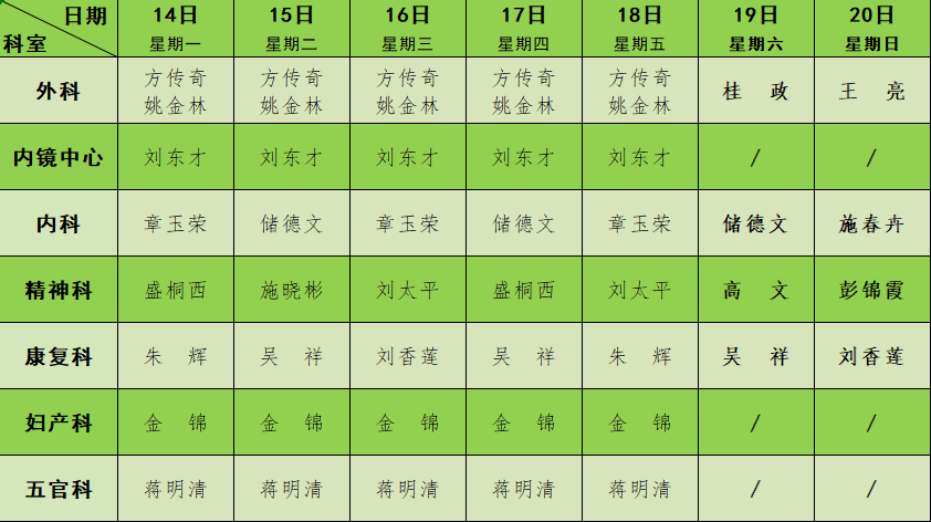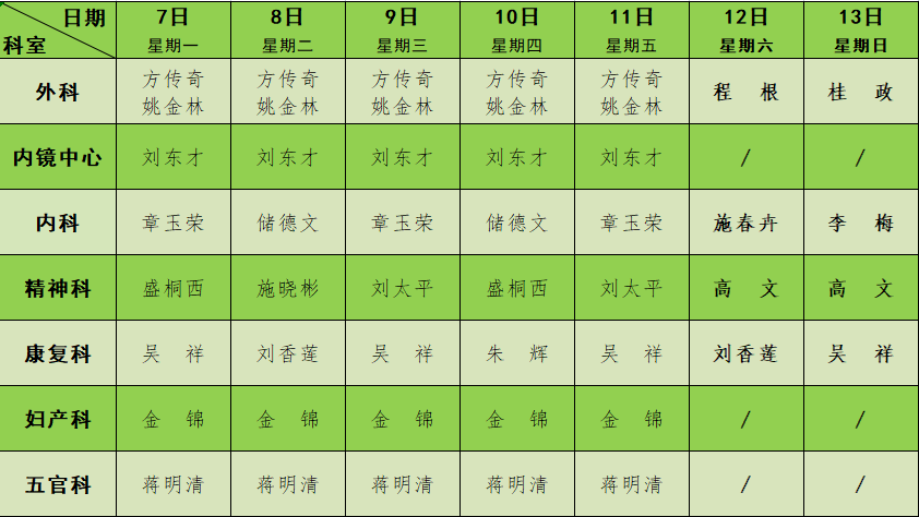 2023年6月门诊节假日排班表