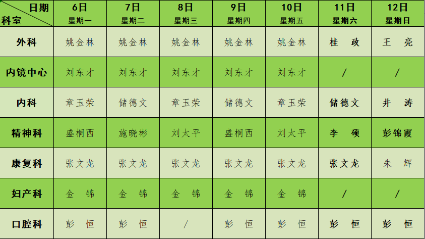 2023年12月门诊节假日排班表