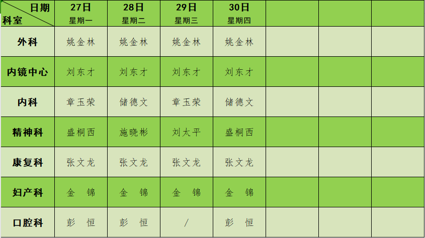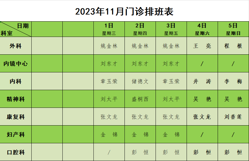 2023年11月门诊节假日排班表
