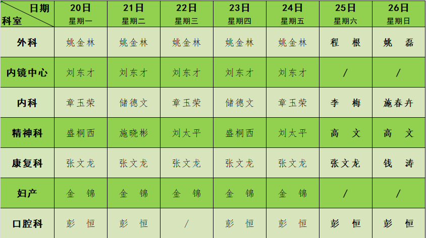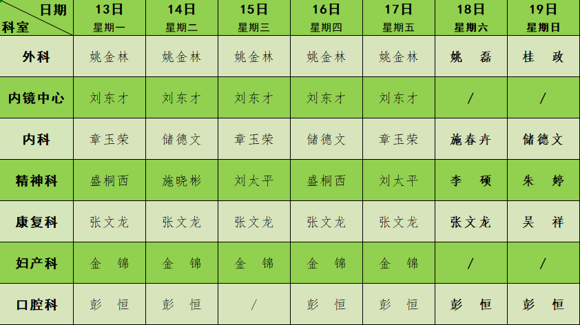 2023年9月门诊节假日排班表