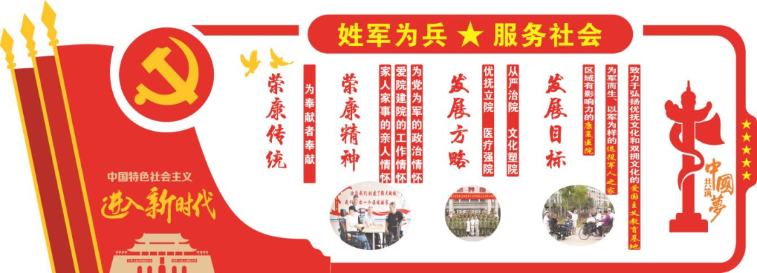 文化是无形的,文化要传承就必须具象化。75年来,一代代荣康人在党对优抚事业的长期关怀中、在服务荣誉军人的长期坚守中、在文都礼让之风的长期浸润中培塑形成了厚重的荣康文化。近年来,着眼把文化具象,我们积极构建了隶属于安徽退役军人系统文化这一大的范畴,但又独属于荣康的文化体系。一是凝练精神文化。通过广泛动员发动,凝练形成荣康文化的核心表述,即“姓军为兵、服务社会”的办院宗旨,以“为党为军的政治情怀、家人家事的亲人情怀、爱院建院的工作情怀”为主要内容的荣康精神和“为奉献者奉献”的优良传统,这些都为新时代的荣康人传承弘扬荣康文化提供了具体的、可视的精神载体。二是打造展馆文化。在医院连廊处建设文化长廊,全景展示医院发展历程和光辉印记。聚力打造全省首家以荣军为主题的展陈馆,把荣康人艰苦奋斗、筚路蓝缕75载浓缩进200平方布展空间,接待了全省100余家单位近3000人次参观,有力激发了大家的崇军情怀。三是建设环境文化。以荣康文化为主题命名路亭塘廊、制作灯箱橱窗,协调驻地命名医院门前主干道为荣康路,设置医者典范、荣军典范、优抚系统典范等榜样宣传牌,立起荣康精神、荣康传统、发展方略等主题雕塑,建设荣军图书馆、荣军书画室、荣军文化墙、荣军活动室等,营造了时时受教育、处处得启发的浓郁氛围。四是搭建载体文化。抢救性编撰反映荣康办院历史的《荣康志》,设计由红十字、爱心、残疾军人等元素融合而成的院徽,创作讴歌发展历程、彰显仁心大爱、蕴含美好愿景的院歌,拍摄展现荣康医院新时代建设发展成效的纪实片。这些都以可视化的形式把荣康文化具象化,成为新时代传承和弘扬荣康文化的具体抓手和形式支撑。文化是多样的,每一种文化都有自己独特的内涵和品格。荣康文化作为省荣康医院所特有的一种文化,红绿白就是她的三原色。一是所谓红即英雄的红,英雄文化是荣康文化的张力表达。荣军休养员,都是1至4级重残军人,他们打过仗、受过伤、立过功、流过血,是国家重大历史事件的亲历者、贡献者,他们是人民的英雄、国家的功臣,在他们身上集中体现着我党我军的优良作风和高贵品质。个体的伤残军人在社会上并不少见,但是作为一个群体在我们国家就仅存于优抚医院。同时,个体伤残军人要把他们的故事传播出去,既受个人意愿的影响更受条件平台的制约。因此,荣康文化把英雄文化突显出来,既是体现价值的应有之义,也是时代要求的必有之义。近年来,省荣康医院就积极发挥荣军休养员活的“历史教科书”作用,成立全省唯一一支荣军宣讲团,近年来宣讲百余场、近万人受到教育。二是所谓绿即崇军的绿,崇军文化是荣康文化的核心要义。省荣康医院是履行特殊政治使命的优抚事业单位,服务荣军、体现尊崇是她的立院之本。因此荣康文化把崇军文化凸显出来,就是完成主责主业的本来要求、也是核心要求。长期以来,荣康人以超越儿女般的情怀服务荣军,为他们营造了一个温暖的家。新时代,我们着眼践行省厅“三家”理念,在长期休养中积极开展“三个像亲人一样工作法”,即康复上像亲人一样照护、情感上像亲人一样尊重、精神上像亲人一样关爱,在荣誉疗养中大力浓厚“四味”,即浓厚情味、军味、医味、鲜味,不断让退役军人和优抚对象的尊崇感成色更足。三是所谓白即医者的白,医者文化是荣康文化的基础支撑。省荣康医院首先是一家医院,是要救死扶伤的。同时,即便是服务荣军也是以医疗技术做支撑的。因此,荣康文化把医者文化凸显出来,就是最基本的一种要求。自对外开放以来,荣康人就确立了以病人为中心的服务理念,同时积极把对内服务的亲人情怀向社会病人延伸,以实际行动践行着医者仁心的大爱。特别是近年来,大力提升医疗技术,规范医疗管理,优化医疗服务,赢得社会病人广泛好评。疫情以来,更是在人员紧张的情况下出动39批次近300人次支援域外地区,支援驻地全区域大规模核酸采集15次,抽调人员参与驻地国道、火车站、社区等值守600余人次,精神卫生中心开通24小时心理咨询热线,2名同志分别被省市卫健委表彰为“防疫工作先进个人”。文化建设绝不仅仅是拉横幅、贴标语,也不仅仅是吹吹打打,而是要切实肩负起使命任务,为服务事业发展做出贡献。近年来,我们积极探索,大胆创新,聚力实现荣康文化的价值功能。一是引领发展。省荣康医院的过去,有辉煌,有挫折,有停滞,有重塑。过去的已然过去,新的时代,我们要回望历史,但更要凝视前方。为此,我们把文化建设的主旨聚焦到引领发展上,确立了“一院一家一地”的发展目标,即区域有影响力的三级康复医院,为军而生、以军为样的退役军人之家,致力于弘扬优抚文化和双拥文化的爱国主义教育基地,和“优抚立院、医疗强院、从严治院、文化塑院”的发展方略,为新时代医院的建设发展立起了四梁八柱。二是凝聚力量。省荣康医院任务类型多元、人员类型多样,如何团结干部职工步调一致向前进成为面临的现实课题。为此,我们把文化建设的关键聚焦到凝聚力量上,通过教育引导,把干部职工的思想和行动统一到树牢优抚意识上,无论是不是优抚科室都要有服务荣军的理念,统一到大力发展医疗的意识上,无论是不是临床科室都要有服务医疗的理念,统一到建康复