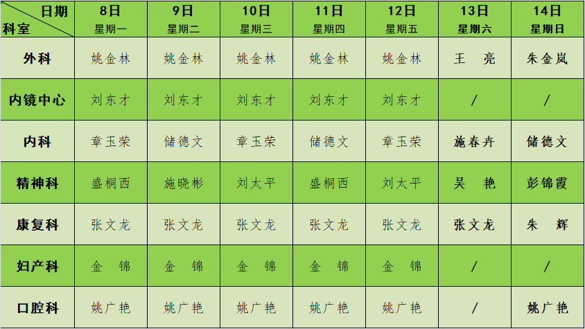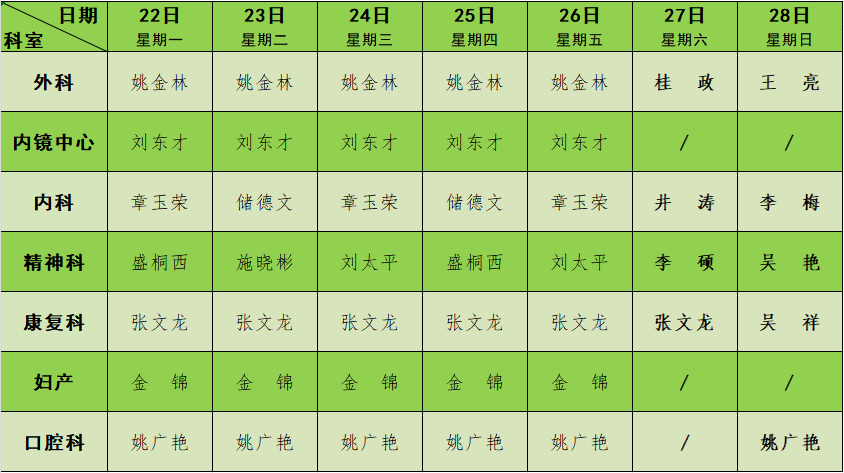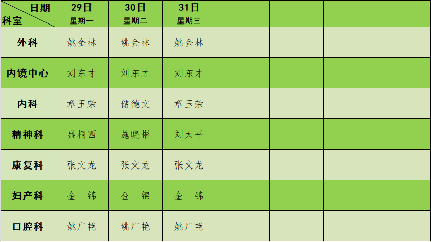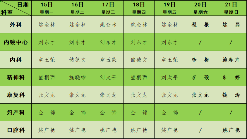 2023年12月门诊节假日排班表