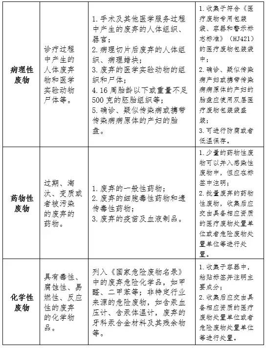 - 说明:因以下废弃物不属于医疗废物,故未列入此表中。如:非传染病区使用或者未用于传染病患者、疑似传染病患者以及采取隔离措施的其他患者的输液瓶(袋),盛装消毒剂、透析液的空容器,一次性医用外包装物,废弃的中草药与中草药煎制后的残渣,盛装药物的药杯,尿杯,纸巾、湿巾、尿不湿、卫生巾、护理垫等一次性卫生用品,医用织物以及使用后的大、小便器等。居民日常生活中废弃的一次性口罩不属于医疗废物。
