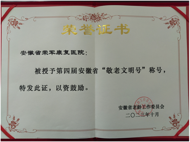2023年,医院优抚工作规范性、品牌化、感受度、影响力进一步提升,医院优抚工作获军委检查组、退役军人事务部高质量发展调研行工作组、省委主题教育第二巡回指导组肯定,医院获评安徽省第四届“敬老文明号”单位,相关做法在《中国退役军人》《中国双拥》《安徽日报》等媒体刊发。