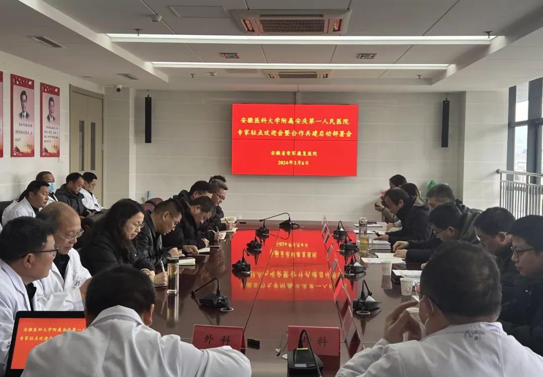 3月6日下午,安徽省荣军康复医院召开安徽医科大学附属安庆第一人民医院第一批四名专家驻点欢迎会暨合作共建启动部署会。医院党委领导班子成员、行政职能科室及各临床科室负责人参加会议。会议由副院长李祥主持。