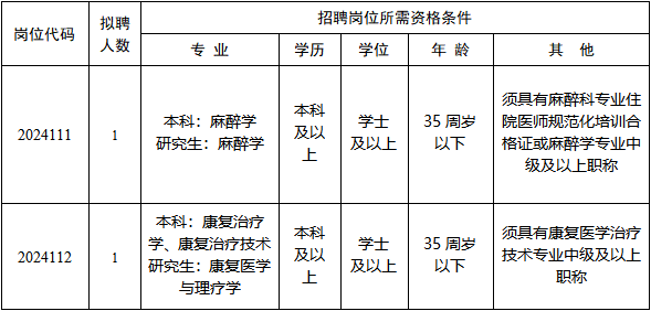 2024年度安徽省荣军康复医院紧缺专业人才招聘公告