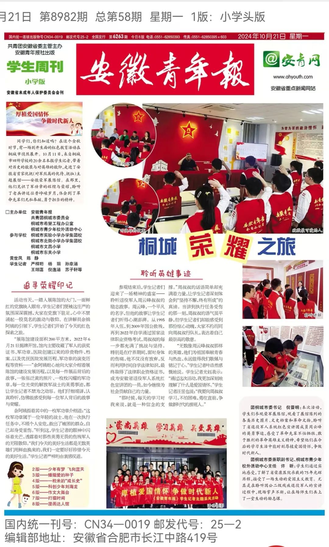 同学们,你们知道吗?在这个金秋时节,有一场别开生面的红色教育活动在桐城市悄然展开。10月11日,来自桐城市四所学校的20余名本报学生记者,带着对历史的敬畏与对英雄的敬仰,走进了安徽省首家优抚(对军烈属的优待、抚恤)主题展馆——安徽荣军展陈馆。在那里,他们见识了军功章的辉煌与荣耀,聆听了老兵讲述往昔峥嵘岁月,体会到了革命先辈们无私奉献、勇于担当的精神。