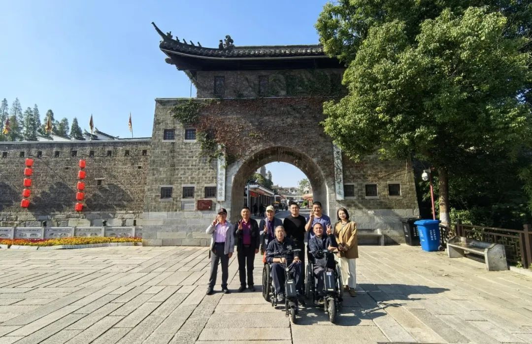 抵达古镇后,休养员们被眼前的美景深深吸引。他们漫步在青石板路上,感受着古镇的悠悠古韵;驻足于古色古香的建筑前,拍照留念,记录下这份难得的美好时光。两名电动轮椅上的休养员也在工作人员的悉心照料下,尽情欣赏着古镇的风光与人文气息,脸上洋溢着幸福的笑容。
