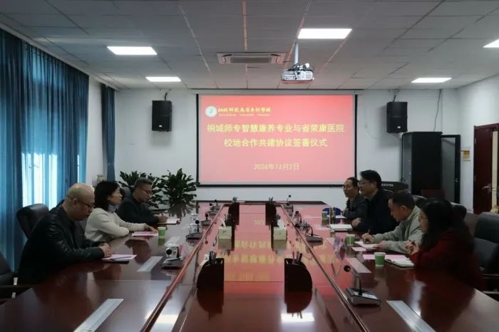 12月2日,安徽省荣军康复医院与桐城师专在桐城师专明德楼举行了智慧健康养老专业校地共建合作协议签署仪式。此次签约标志着双方在智慧健康养老领域的深度合作正式拉开帷幕,旨在整合地方医疗康复服务与高校教育资源优势,共同培养适应社会需求的智慧健康养老专业人才。