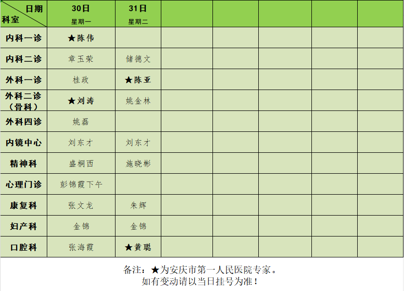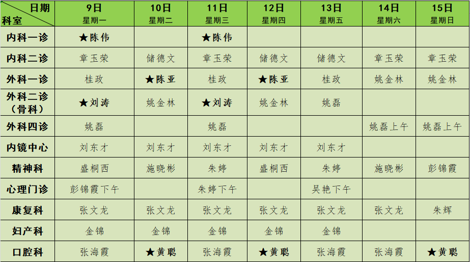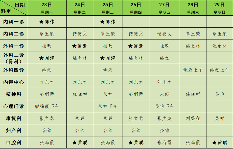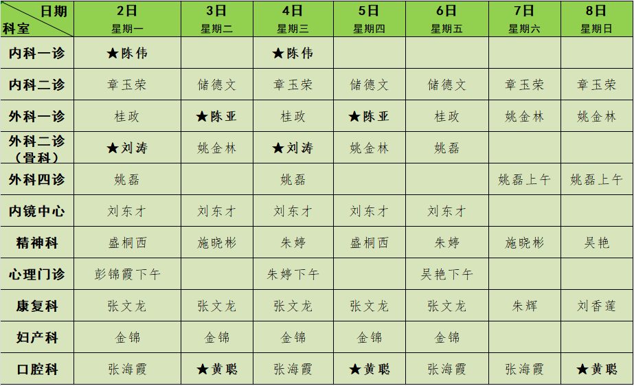 2025年1月门诊排班表