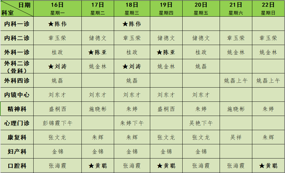 门诊排班