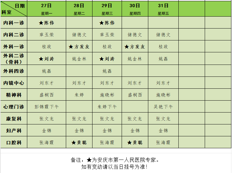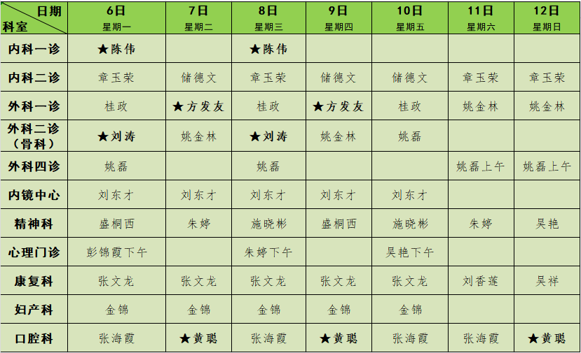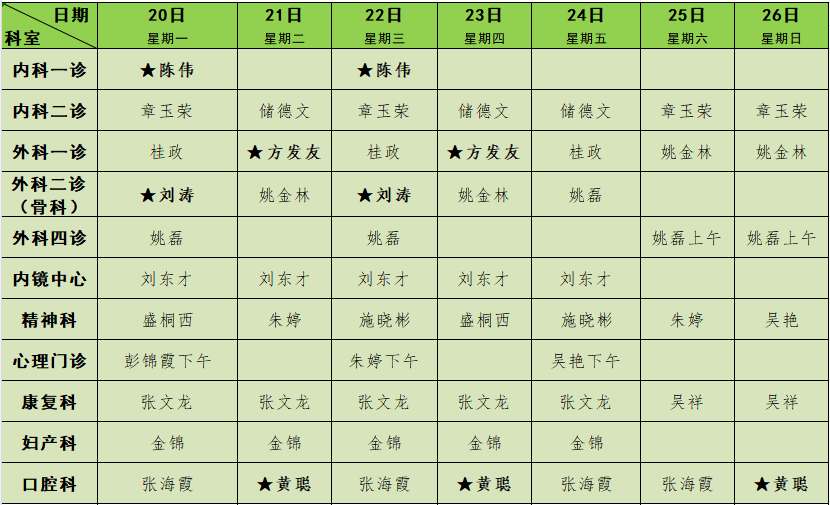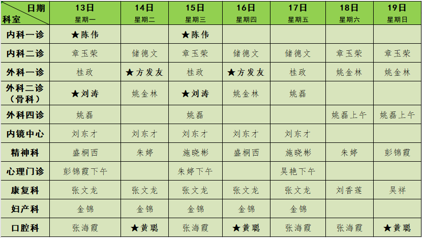2025年3月门诊排班表
