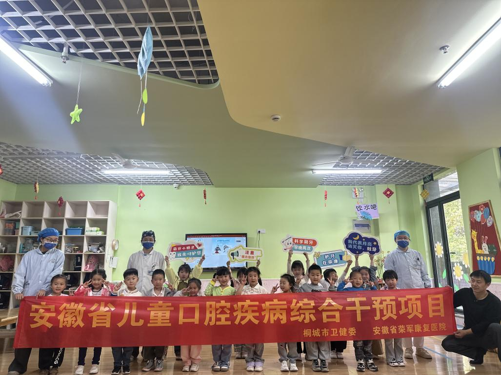 为响应《关于做好2025桐城市健康口腔行动的通知》文件精神,落实健康口腔惠民活动,安徽荣军康复医院口腔科于4月18日正式启动“健康口腔进校园活动”。首站走进文昌教育集团校久阳春天幼儿园,为160多名适龄儿童提供免费口腔检查和涂氟服务,并和小朋友互动开展了一场健康口腔宣教活动。
