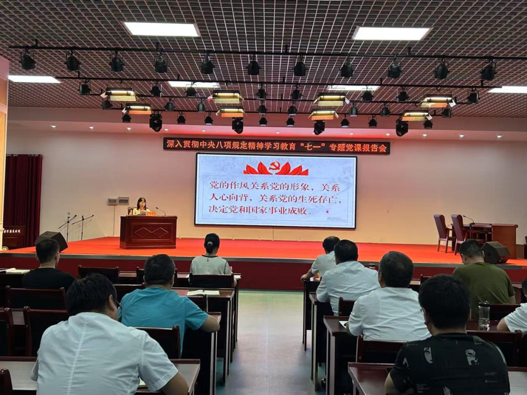 为扎实开展深入贯彻中央八项规定精神学习教育,进一步统一思想、凝聚共识,为医院高质量发展提供坚强作风保障,6月27日下午,省荣康医院举行深入贯彻中央八项规定精神学习教育“七一”专题党课报告会。党委书记殷惠红作题为《锤炼过硬作风 赋能荣康发展》的专题报告,党委班子成员出席,全体在职党员、离退休党员代表、非党员中层干部、护士长(治疗师长)及青年代表等80余人参加报告会。