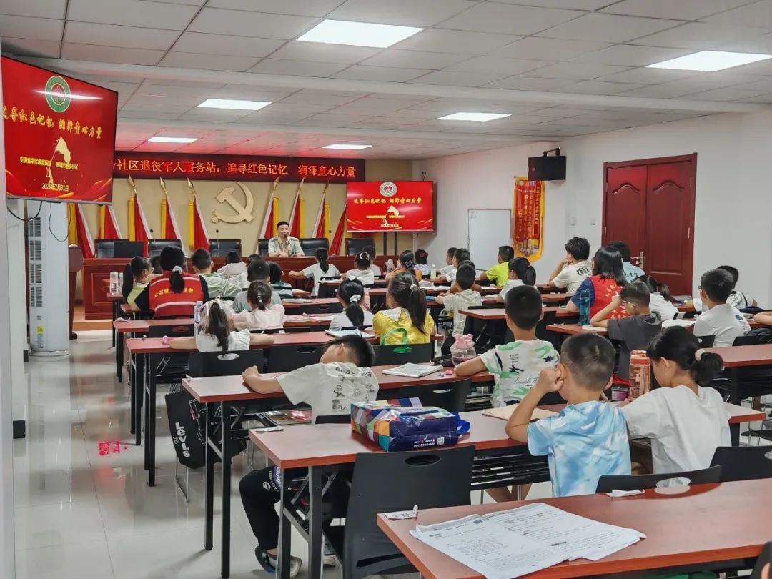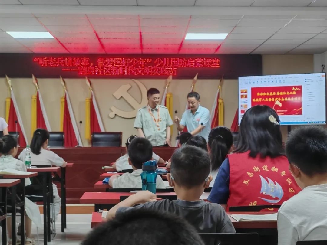 在“八一”建军节即将到来之际,安徽省荣军康复医院荣军宣讲团的优秀退役军人、荣立一等战功的老兵邵玉凯来到文昌街道翻身社区,为社区孩子们讲述亲身经历的烽火岁月,以“一老一小”的互动形式传承红色基因。