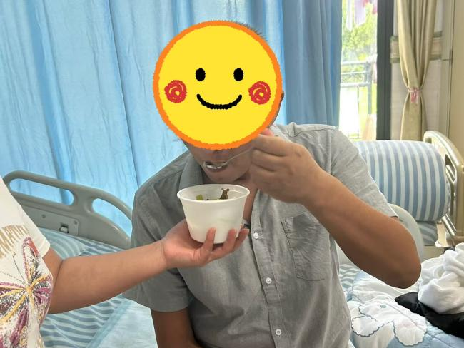 当患者安全咽下第一口饭菜时,家属激动地表示:“能自己吃饭,就是最大的幸福!