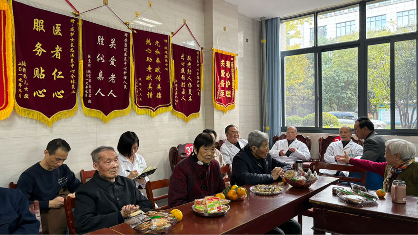 文艺表演后,家属、院领导与老人们围坐一堂,开启工休座谈会。大家畅所欲言,家属们分享陪伴心得,院领导倾听老人需求与建议,工作人员也细致回应照料细节,温馨的交流让在场每个人都倍感温暖。