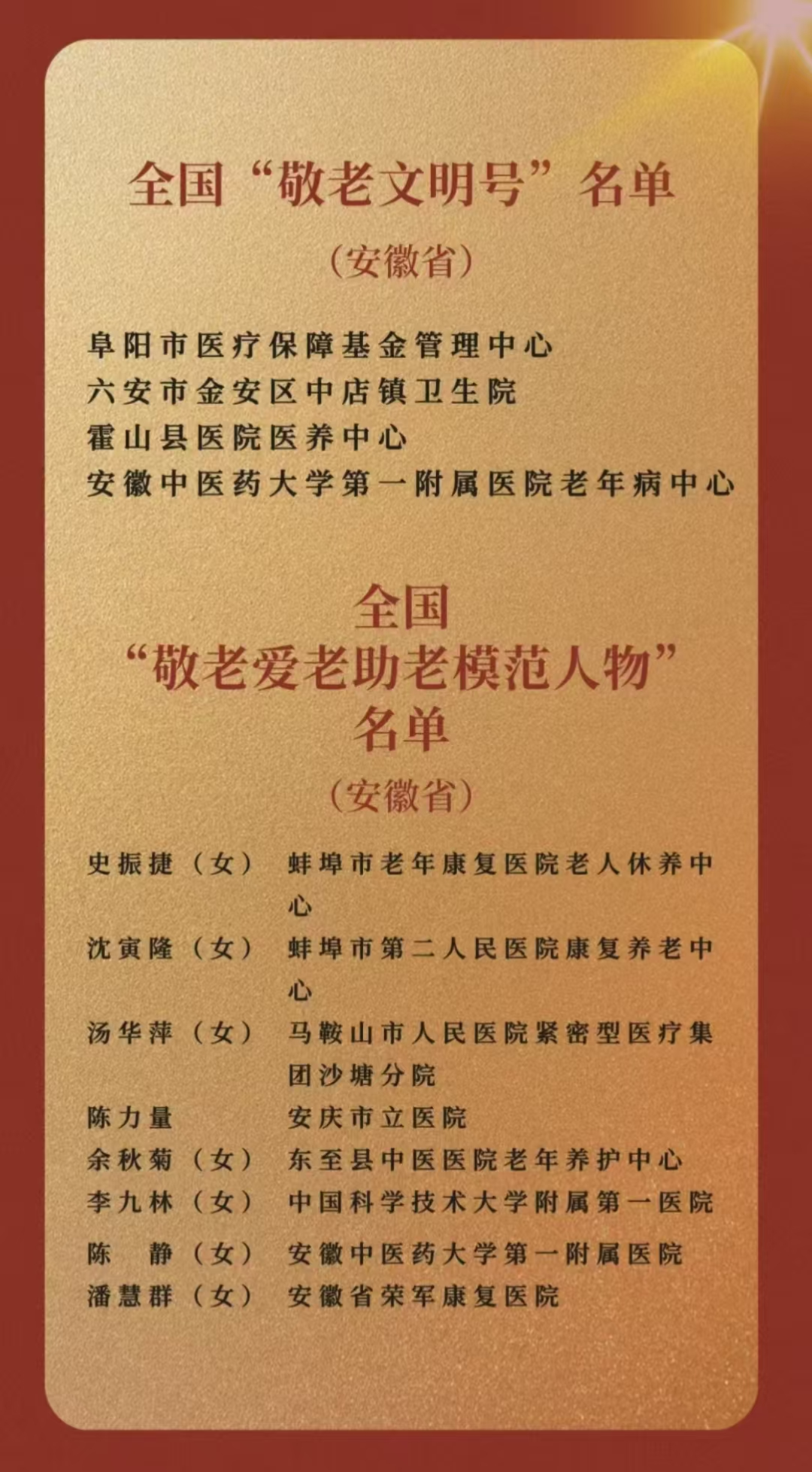 喜报!我院潘慧群同志获评全国“敬老爱老助老”模范人物
