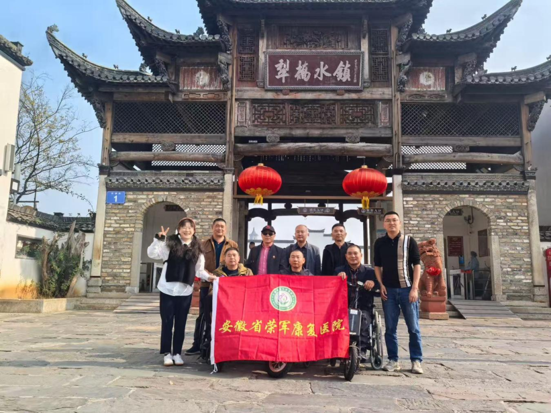为弘扬尊崇优待退役军人的优良传统,提升服务保障水平,丰富在院荣军休养员的精神文化生活,近日,安徽省荣军康复医院精心组织7名在院荣军休养员,前往铜陵市犁桥水镇与永泉小镇,开展“赓续红色基因,感受发展脉搏”主题参观游览活动。