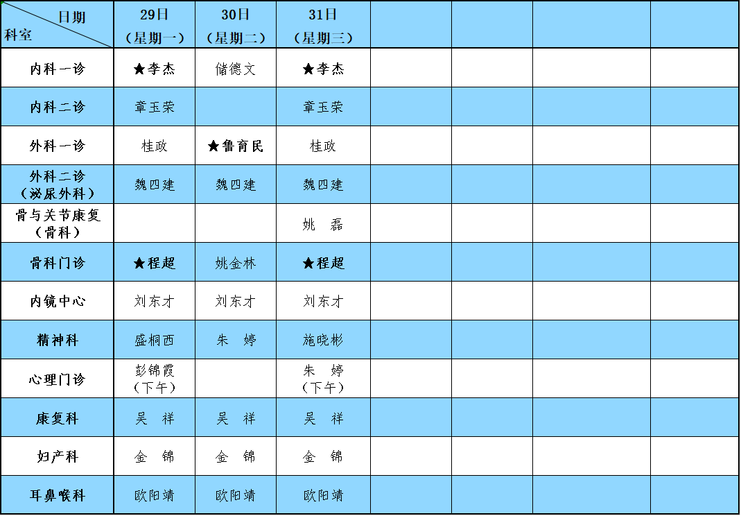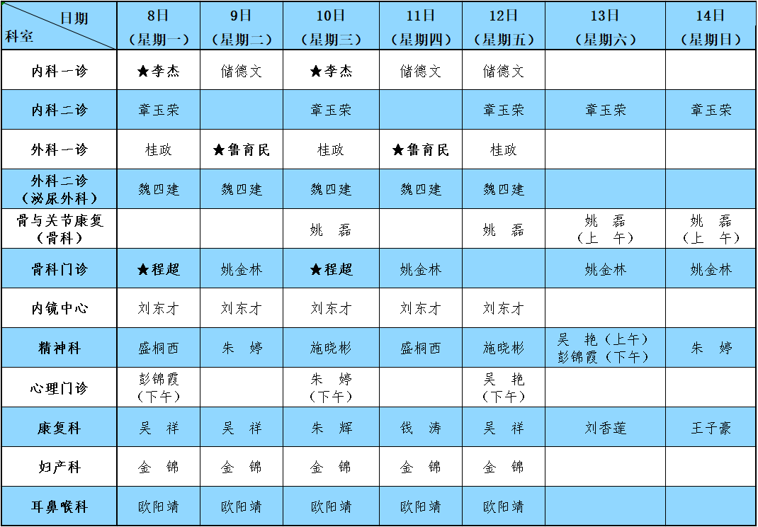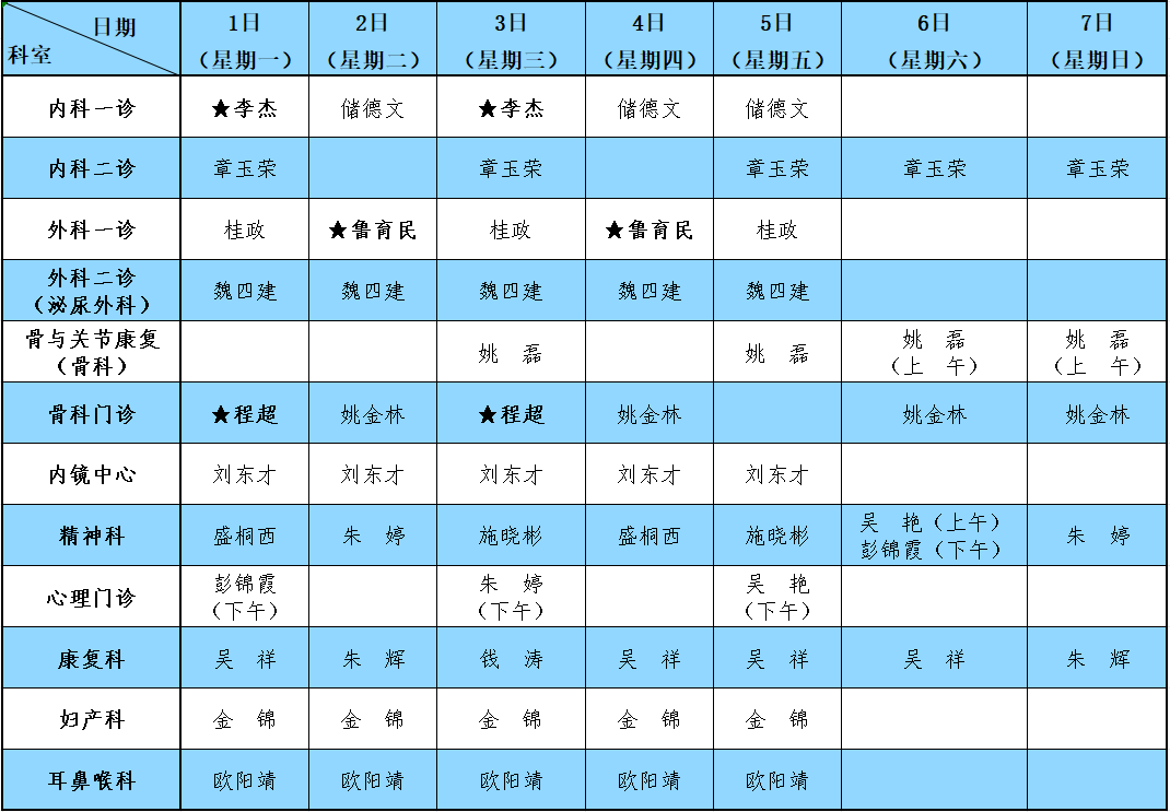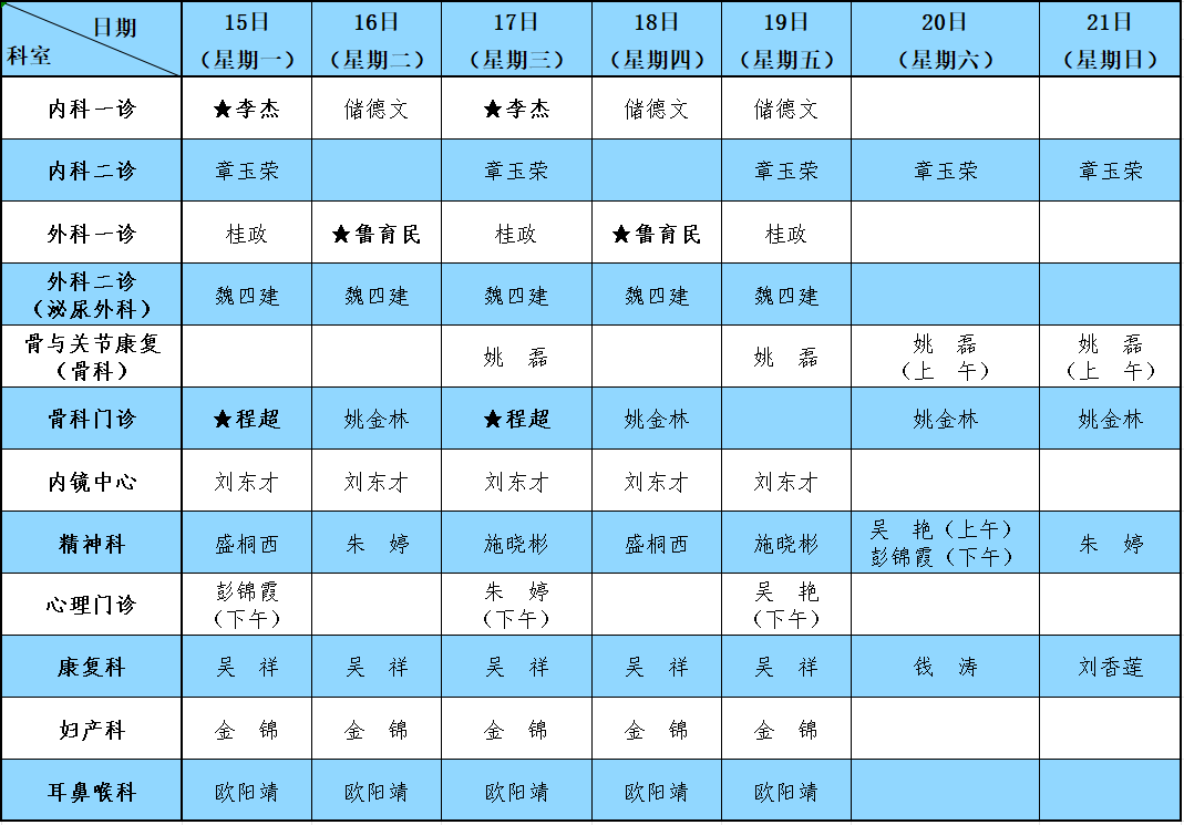 备注:★为安庆市第一人民医院专家。